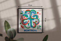Description Cybèle uses her distinctive visual signature to transform the iconic Montreal city logo into an explosion of joyful colors. The logo represents a flower with four heart-shaped petals. It also contains the letters V and M which are the initials of the City of Montreal. (Print only, not framed)